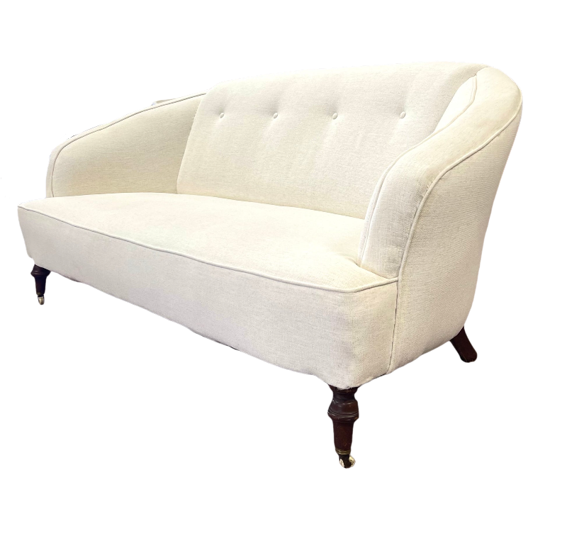Rare 18th Century Langebear & Co iron back frame couch. Fully restored with the original casters. New material by Charlotte Fabrics, a soft chenille texture with Fiber Guard technology.